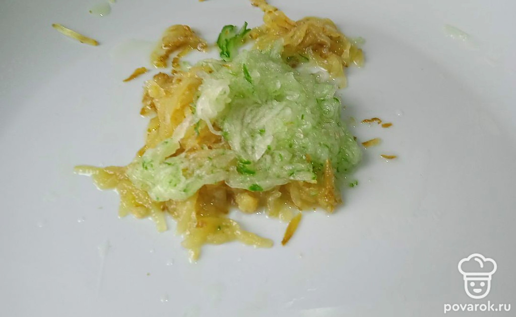 Маринованные корнишоны натрите на мелкой терке.
