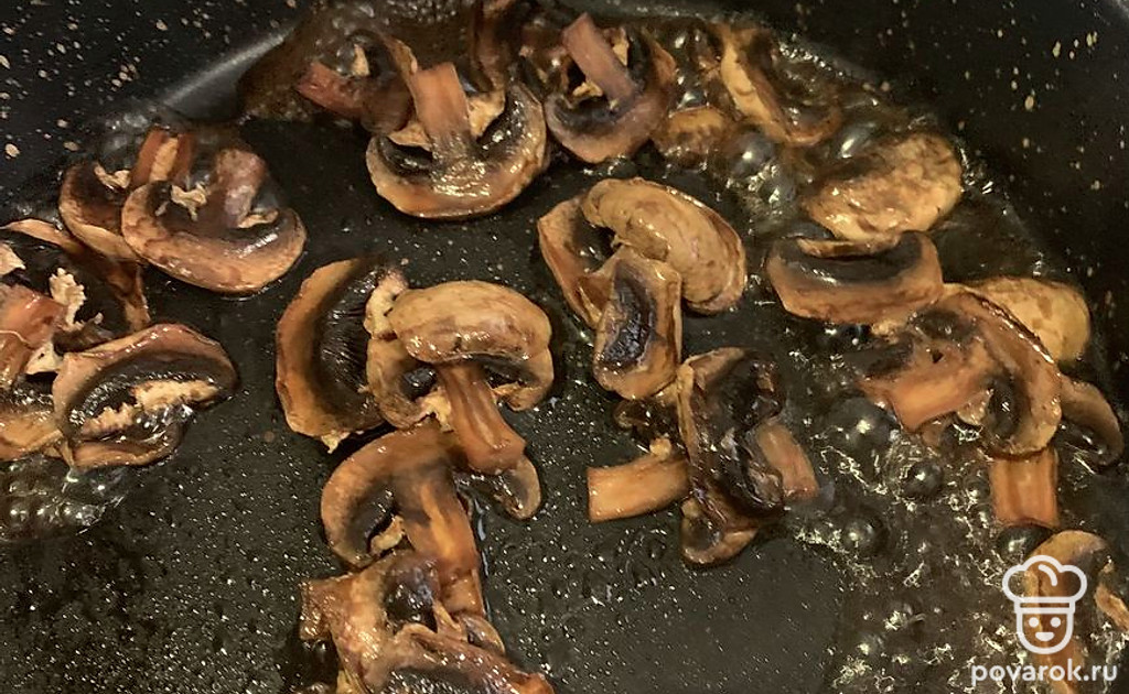 Помойте и обжарьте шампиньоны 5-7 минут.