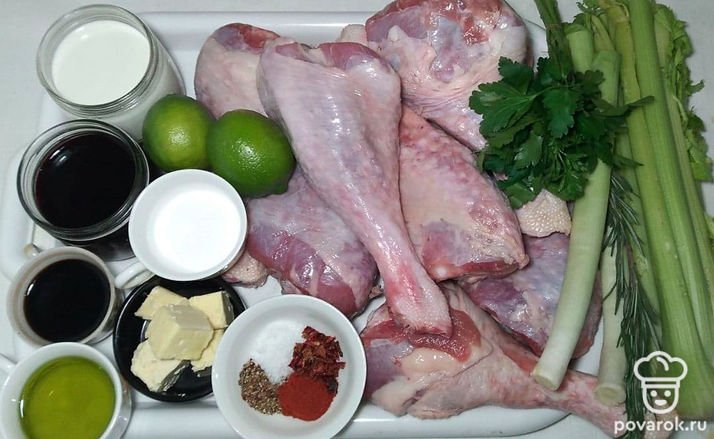 Голени индейки со сливочным соусом — это блюдо очень вкусное, а главное полезное, так как мясо индейки считается диетическим и является питательным. Так как голени индейки маринуются в маринаде из сока лайма, соевого соуса и приправ, оно выходит нежным и мягким.