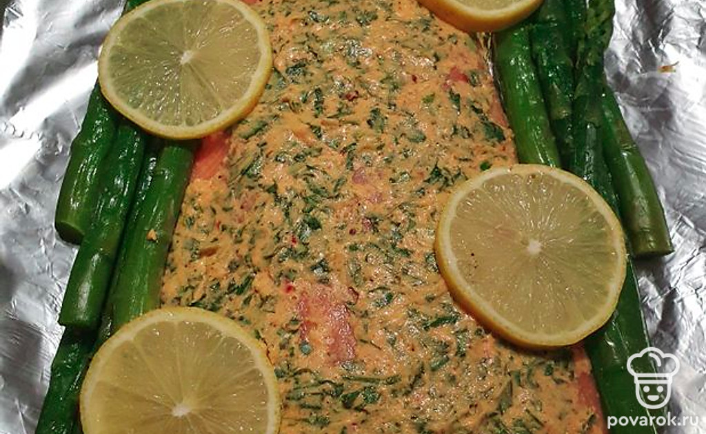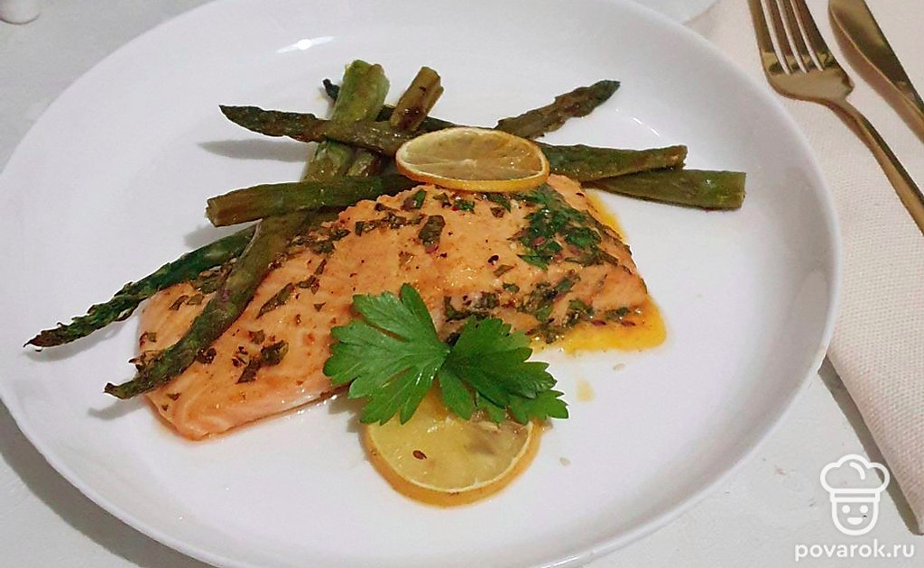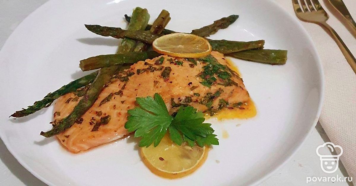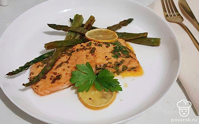 Данный рецепт невероятно прост в приготовлении. Он поселился в нашем доме после посещения кулинарного мастер-класса. Рыба по этому рецепту получается нежной, прямо тает во рту. А спаржа слегка хрустящей. Очень аппетитное праздничное блюдо.