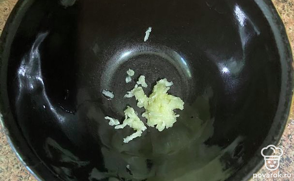 Измельчить мелко 1 зубчик чеснока.
