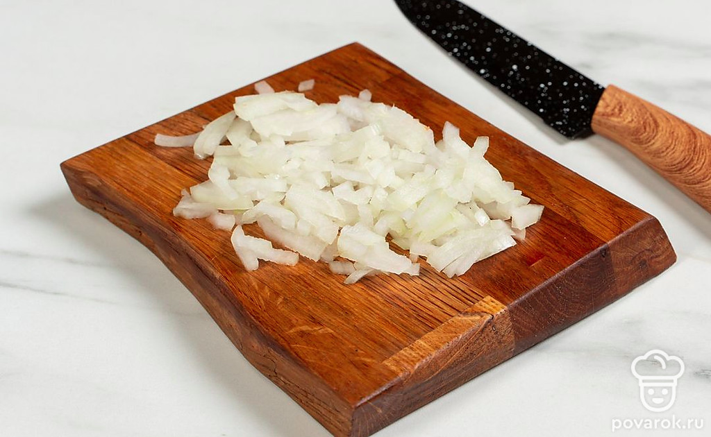 Поставьте сковороду с маслом на средний огонь. Когда масло нагреется, добавьте лук. Обжаривайте его 5-7 минут, периодически помешивая.