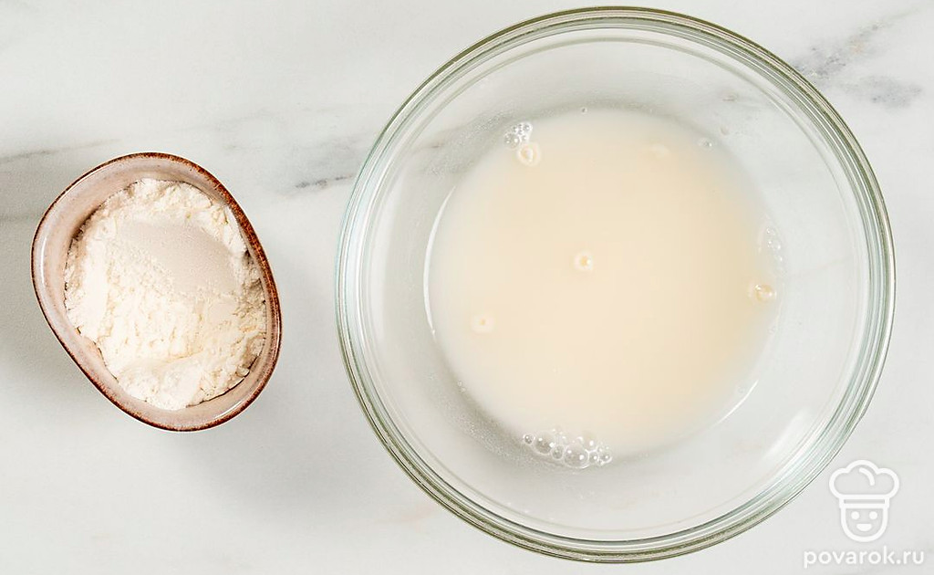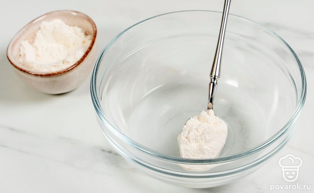 Влейте в небольшую миску 4 ст.л. воды. Добавьте в нее муку.