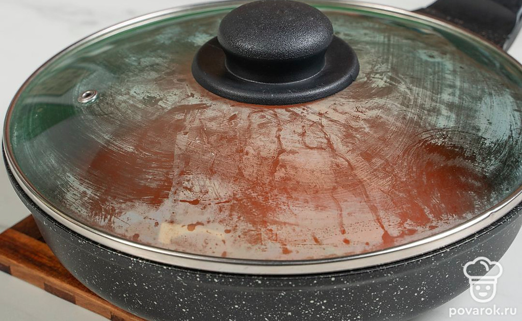 Накройте сковороду крышкой и оставьте подливку кипятиться на среднем огне в течение 10 минут.