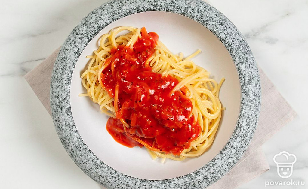 Эта томатная подливка знакома многим. Ее можно подавать практически с любым гарниром, но лучше всего она сочетается именно с макаронами. Чтобы приготовить такой соус, вам нужно смешать поджаренный лук с томатной пастой, разбавить смесь водой, добавить муку и потушить до готовности. Густоту подливки можно регулировать самостоятельно. Для этого достаточно добавить больше или меньше воды.