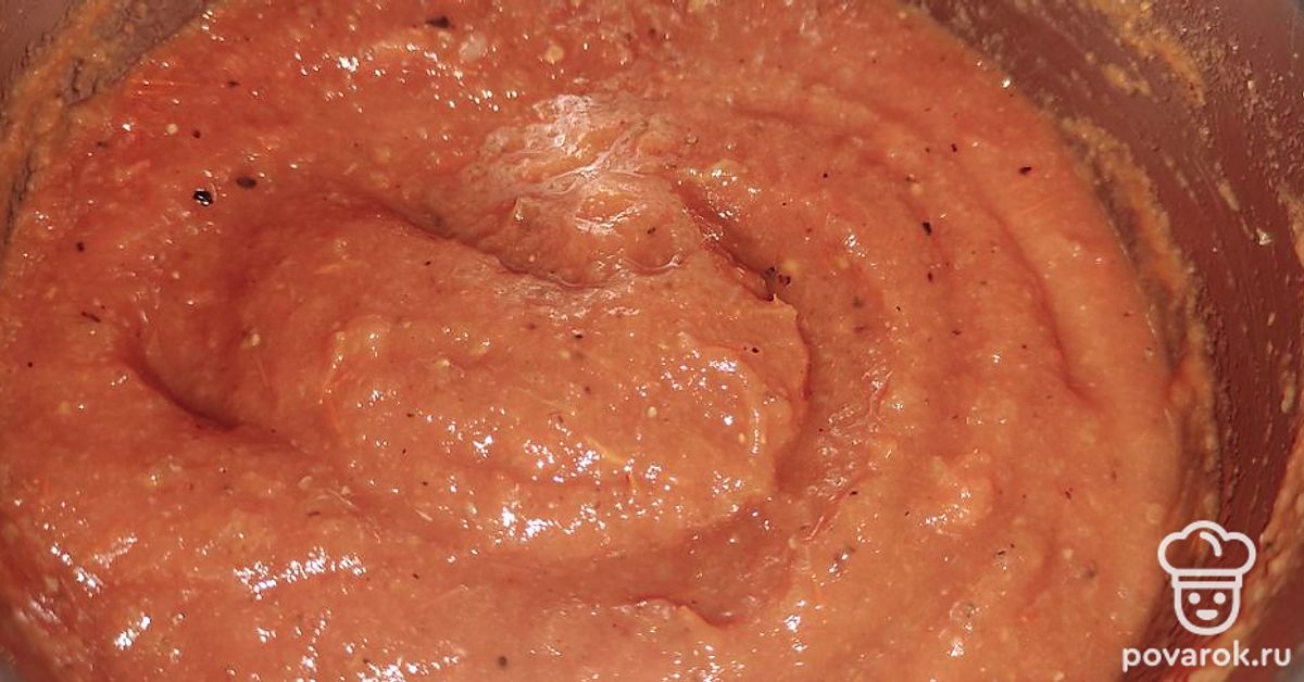 Когда блюдо остынет, добавьте 2 столовые ложки яблочного уксуса и пробейте блендером до состояния пасты. Паста может храниться в холодильнике.