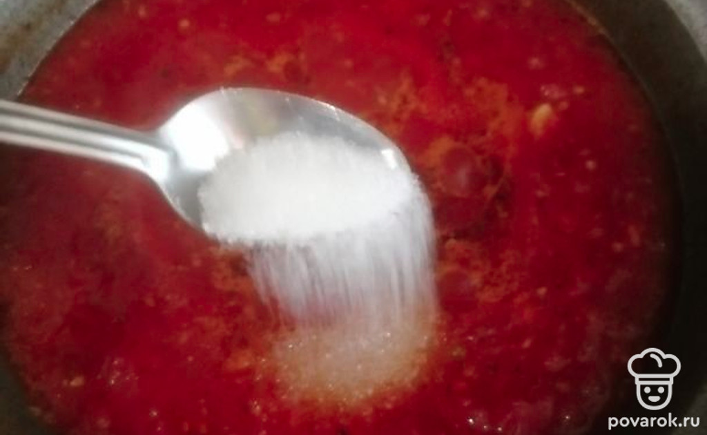 Добавляем сахар. Все перемешиваем, пробуем и увариваем. Раскладываем горячим в стерилизованные банки. Укупориваем железной крышкой.