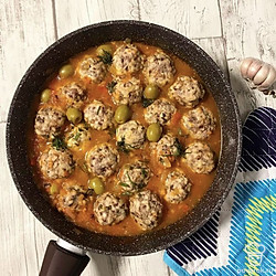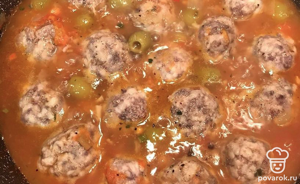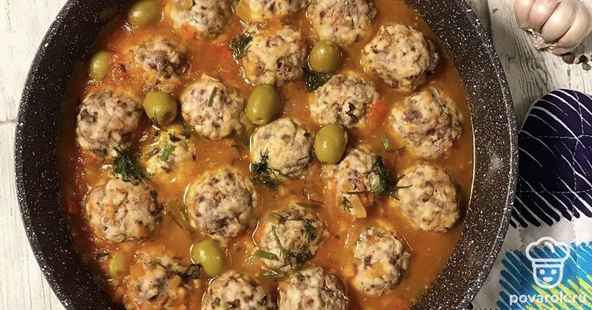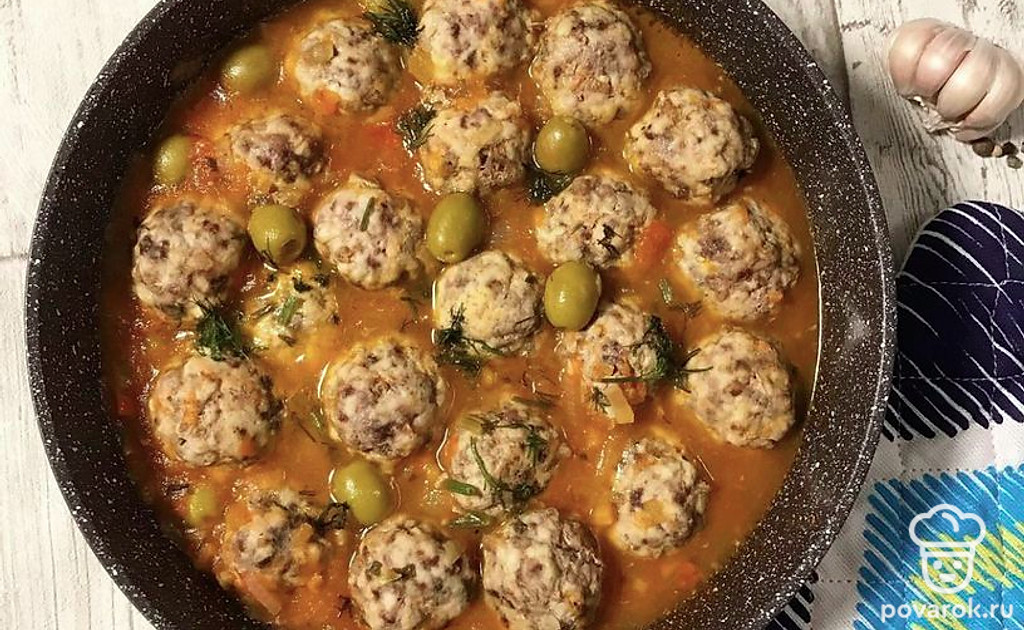 Ароматные фрикадельки с оливками и томатами.