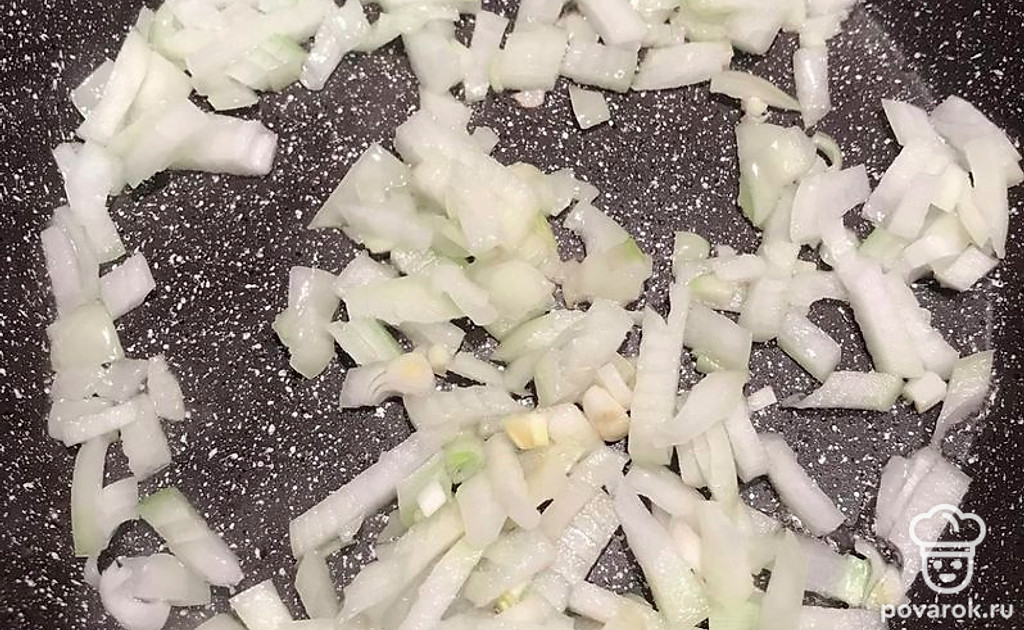 Обжарим лук и чеснок.