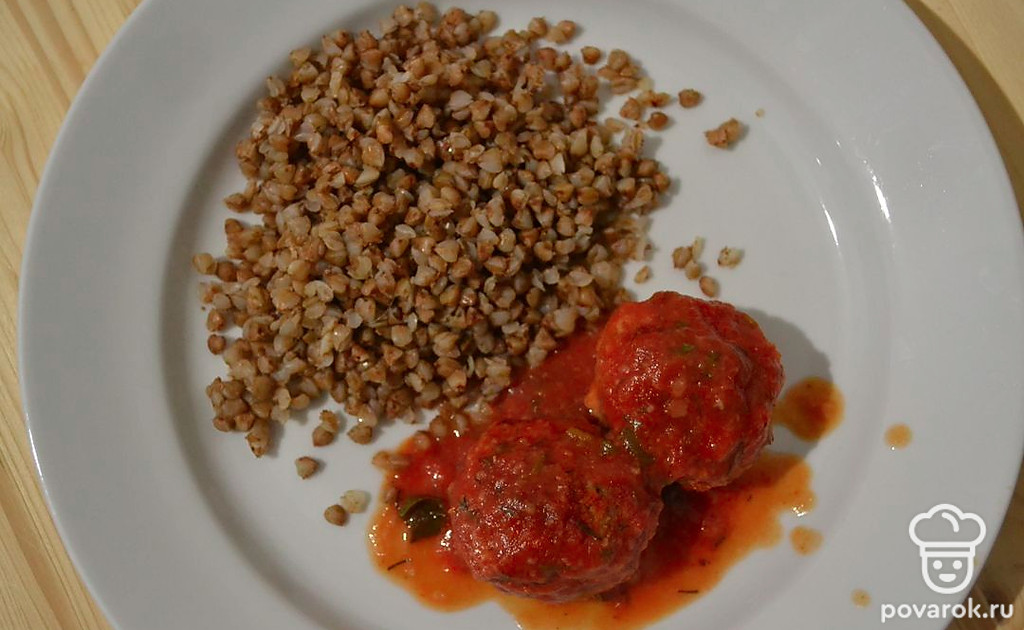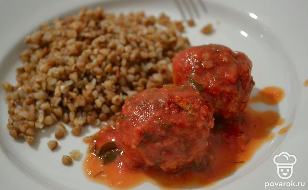 Фрикадельки поливаем получившимся соусом и подаем с гарниром. Приятного аппетита.