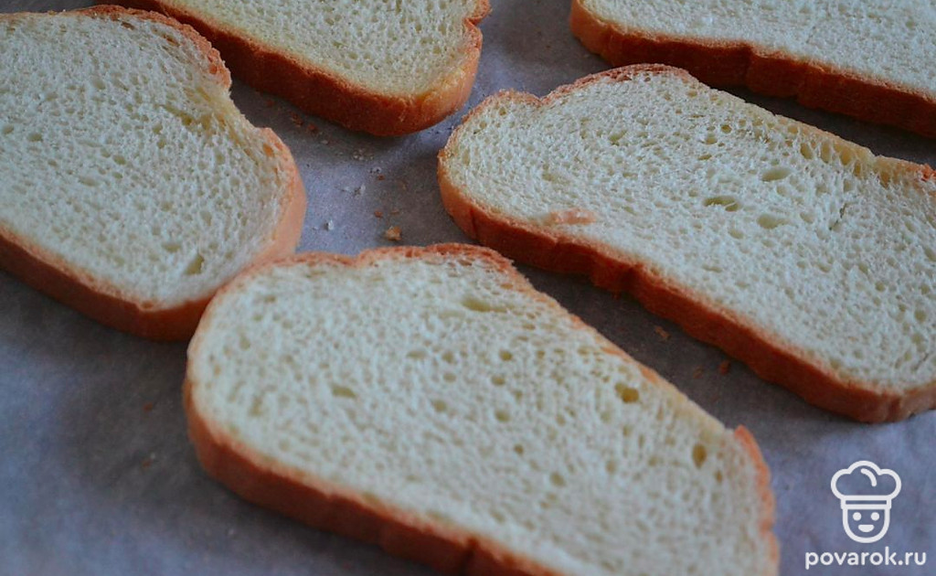 Белый хлеб просушиваем в духовке при температуре 80 градусов (можно использовать готовые сухари) и перемалываем в блендере.