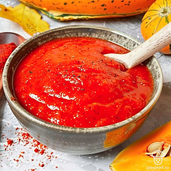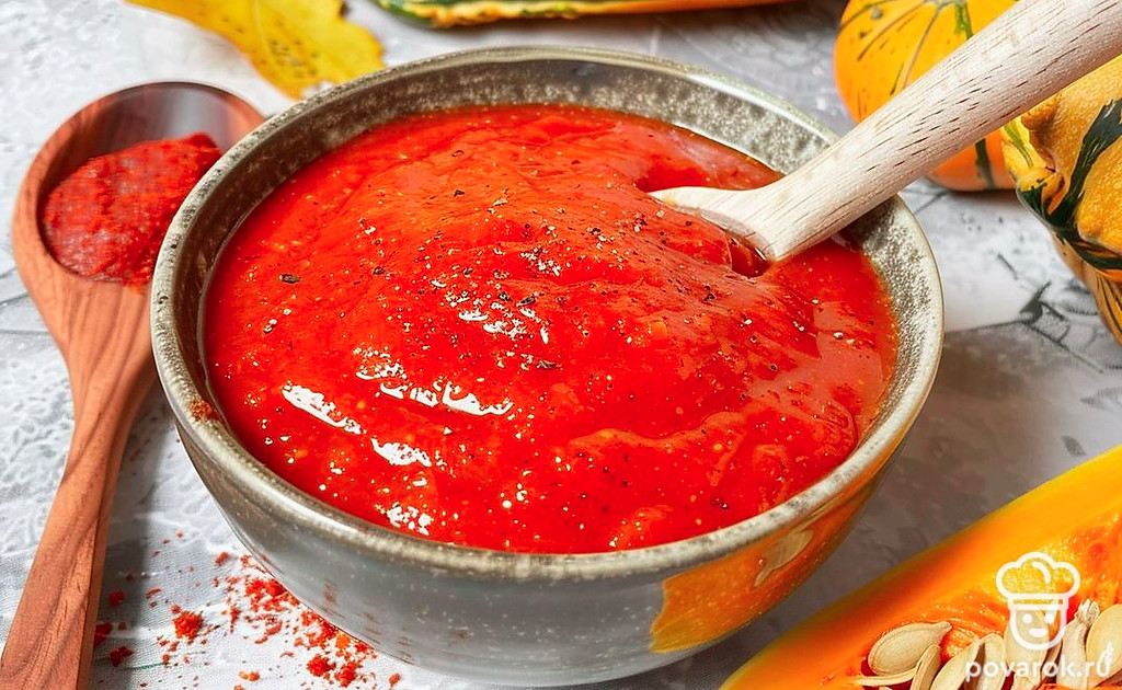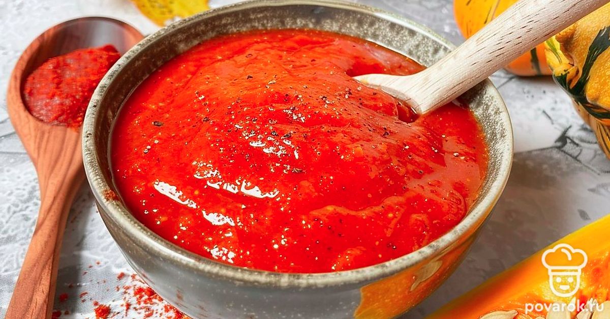 Кетчуп — овощной соус на основе томатной пасты и специй. К ним можно добавить тыкву, приправленную мускатным орехом, корицей, имбирем и перцем, которые придадут готовому соусу пряный вкус и ярко выраженный аромат.