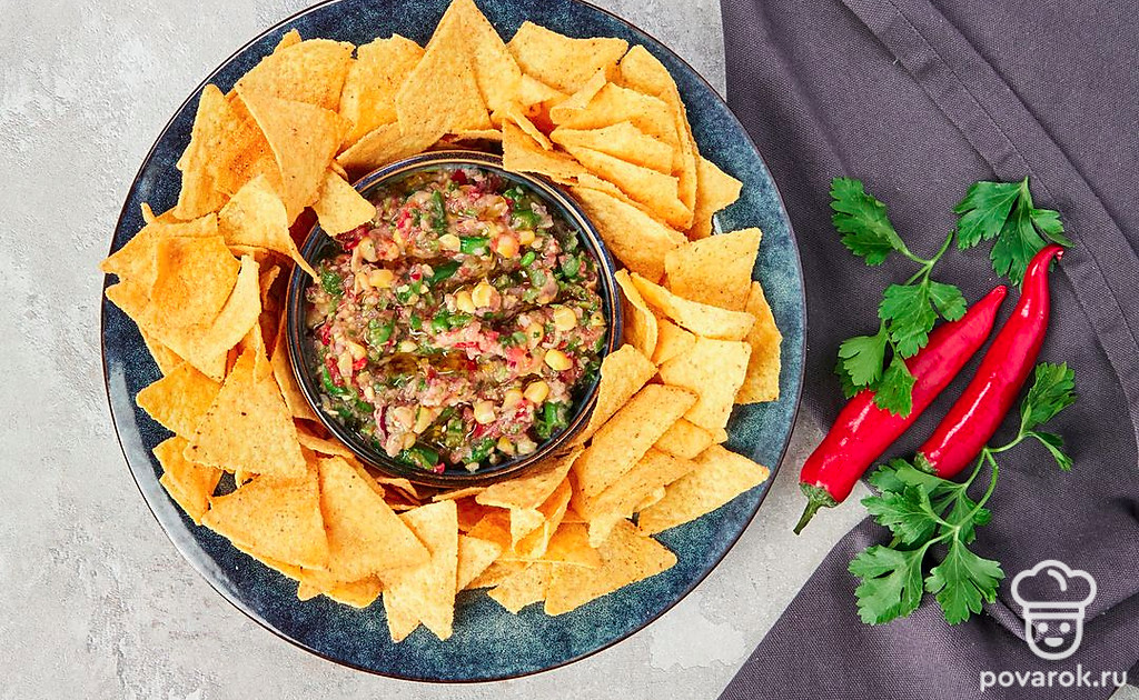 Томатный соус с кукурузой и кинзой можно использовать как приправу к чипсам, овощам или мясным блюдам, чтобы придать им пикантность и остроту. Эта разновидность острого томатного соуса отличается от остальных многочисленных вариаций тем, что в нее включена ароматная кукуруза и пряная кинза. Остроту соуса можно легко регулировать, уменьшая или увеличивая в нем количество перца чили и чеснока по вкусу. Можно добавить в этот соус майонез, сливки или сметану, чтобы сделать его вкус более мягким.