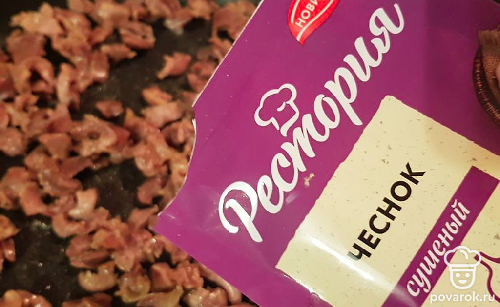 Насыпьте сушеный чеснок. Посолите по вкусу.