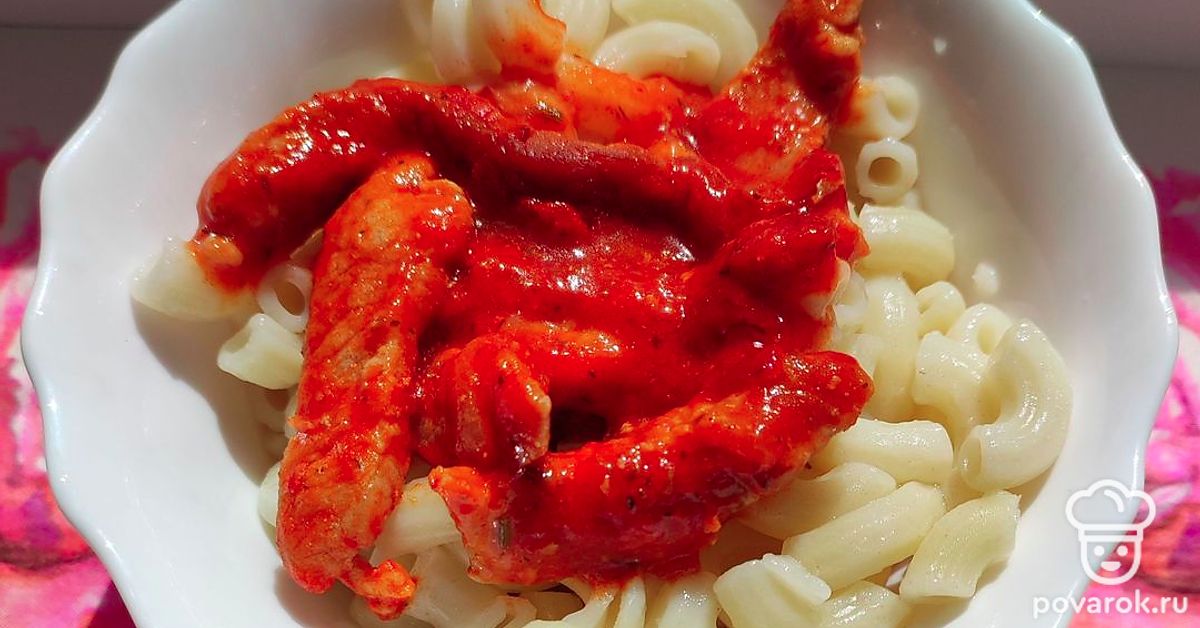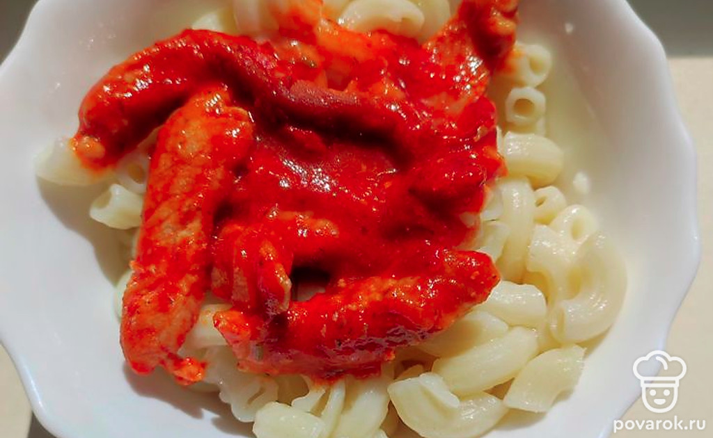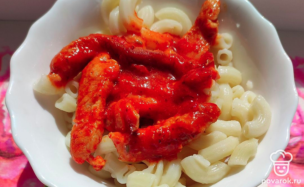 Подлива хорошо сочетается с любыми гарнирами, но особенно вкусна она с макаронами.