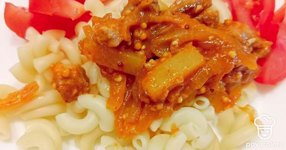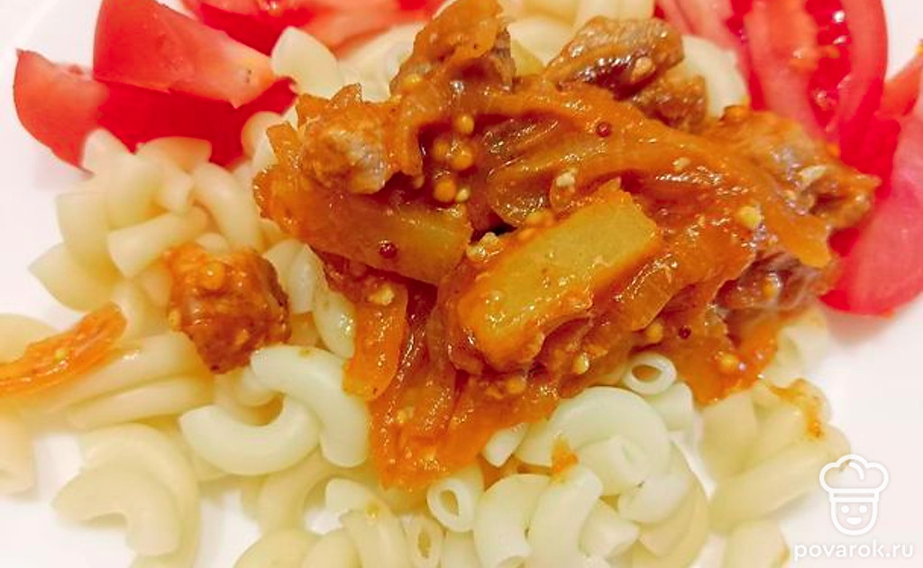 Подать можно с картошкой или макаронами. Интересное сочетание не оставит вас равнодушным.