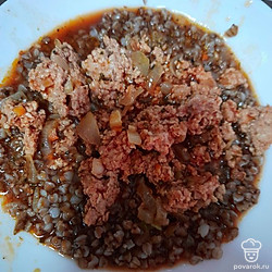 Добавить воду, перемешать, тушить на медленном огне. Количество воды по желанию, можно по гуще, можно более жидко сделать.