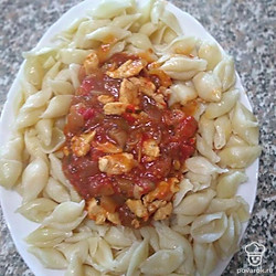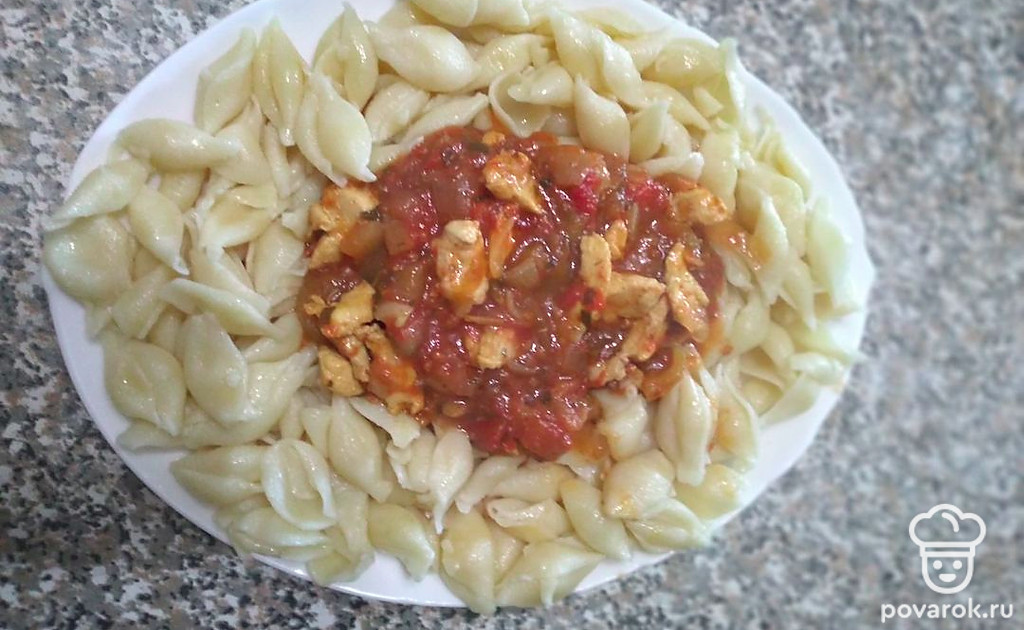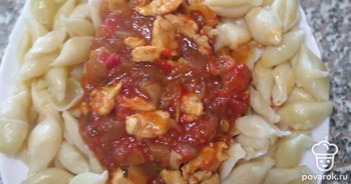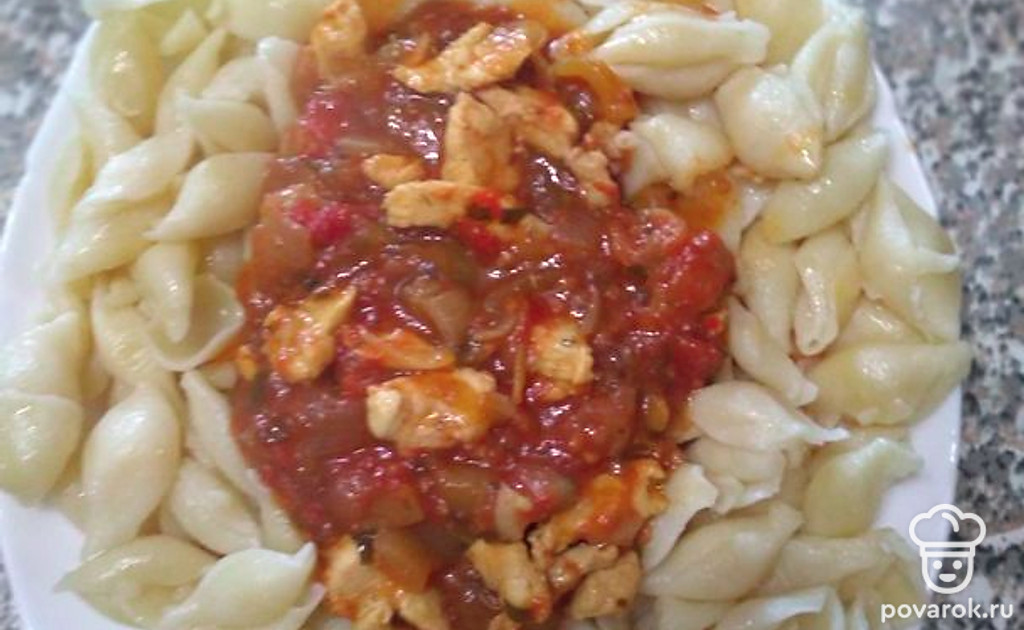 Готовую подливку можно подать с макаронами. Приятного аппетита!