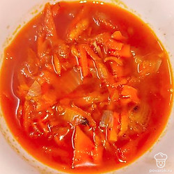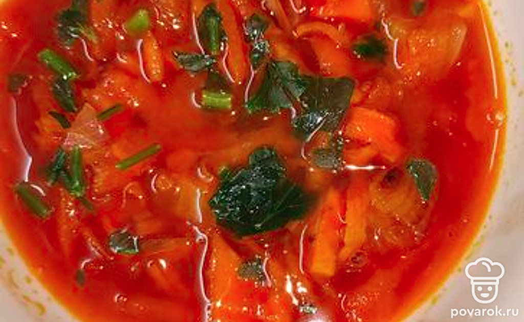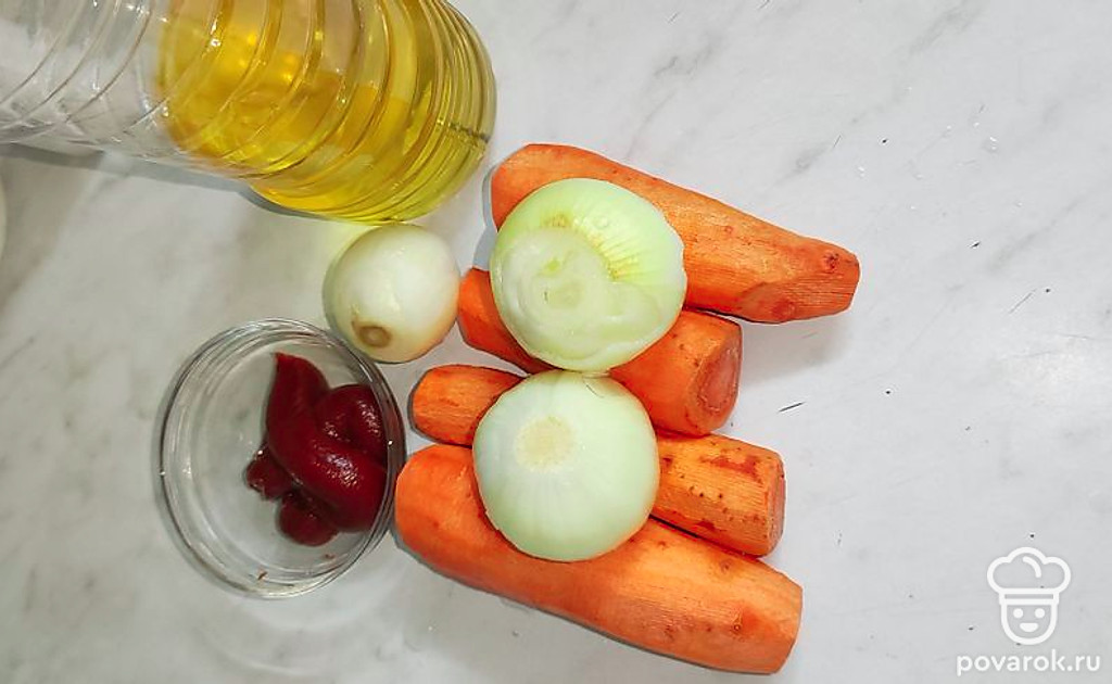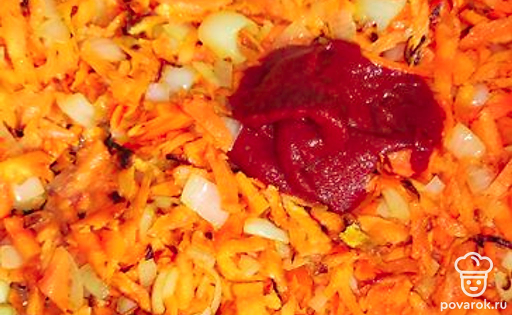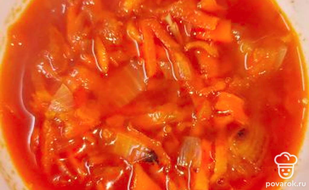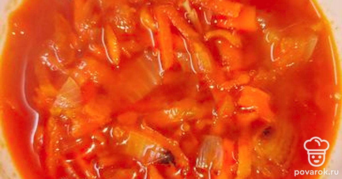 Овощная подлива из лука и моркови на основе томатной пасты — отличное дополнение к любому гарниру.