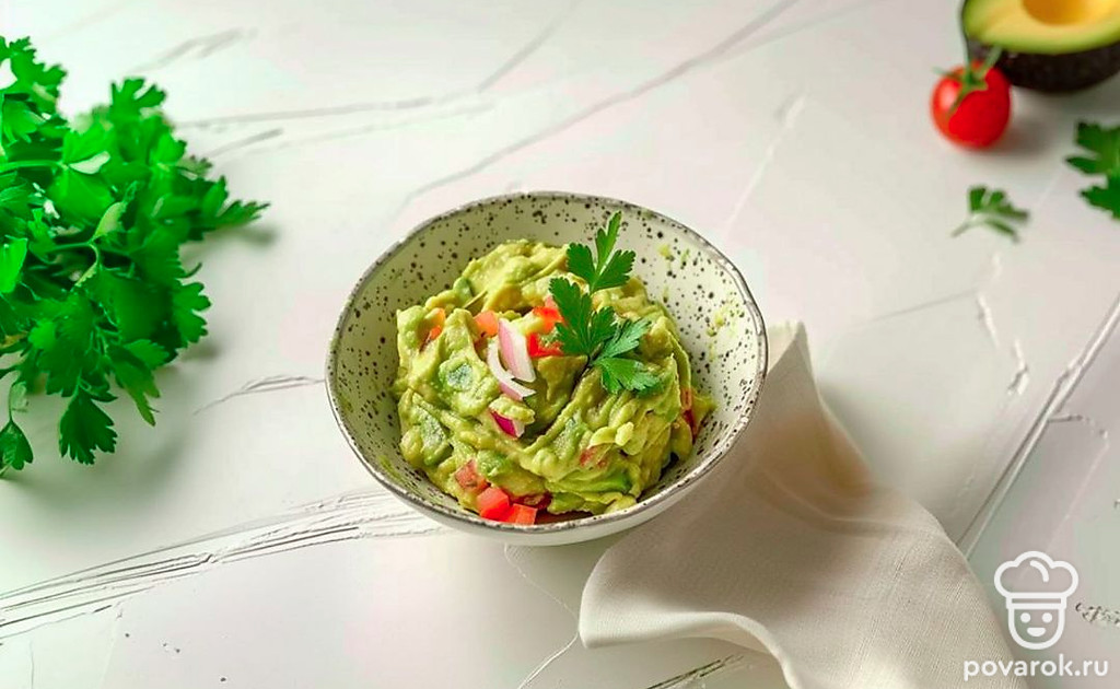 Название «Гуакамоле» переводиться как «соус из авокадо», и испанские конкистадоры называли закуску «маслом бедняков». Традиционно закуска подаётся в виде пасты и состоит из: авокадо, острого перца халапеньо, сока лайма и специй. Однако существуют и более нежные современные версии в виде салата на блюде из мелконарезанных кусочков авокадо, томатов и лука, приправленных оливковым маслом и размолотого острого перца халапеньо.