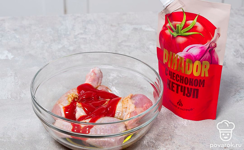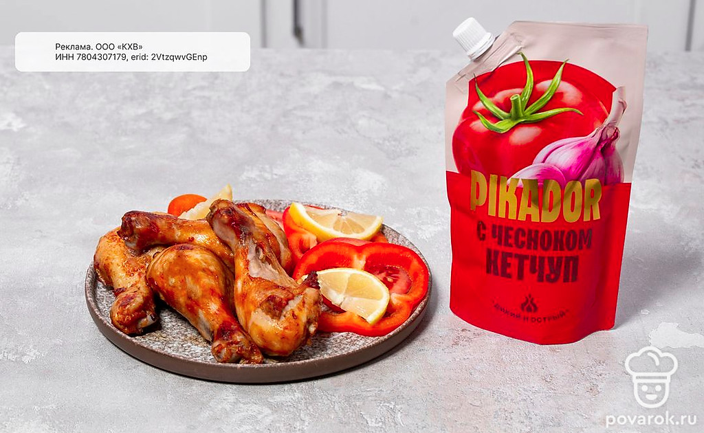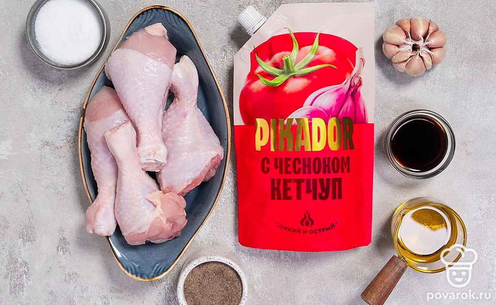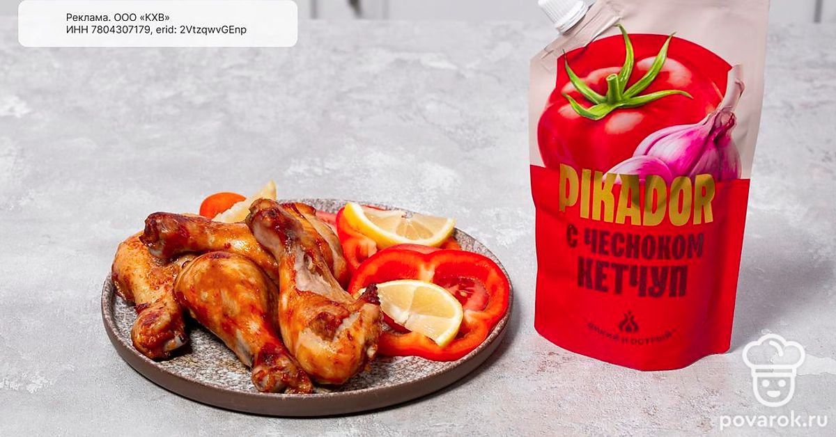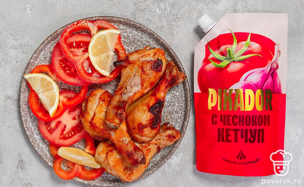 Есть много разных вариантов приготовления куриных ножек. Кто-то обжаривает их на сковороде, а кому-то больше нравятся ножки на гриле. Мы же решили запечь их в духовке. А чтобы вкус куриных ножек стал ярче, мы смешали их с ароматным маринадом на основе чесночного кетчупа PIKADOR и соевого соуса. Благодаря равномерному запеканию в духовке мясо приобрело красивую румяную корочку и получилось очень вкусным. Подавать такие ножки можно с овощами или с легким гарниром, например, картофелем.