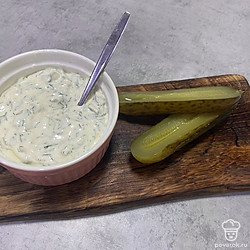 Соус тартар отлично сочетается с рыбой, мясом, картошкой. Очень прост в приготовлении, имеет насыщенный вкус и аромат.