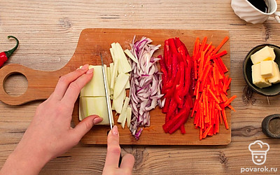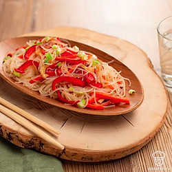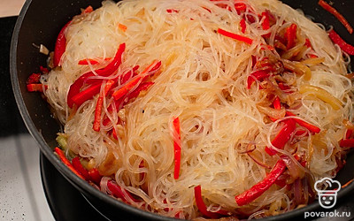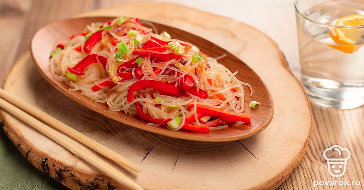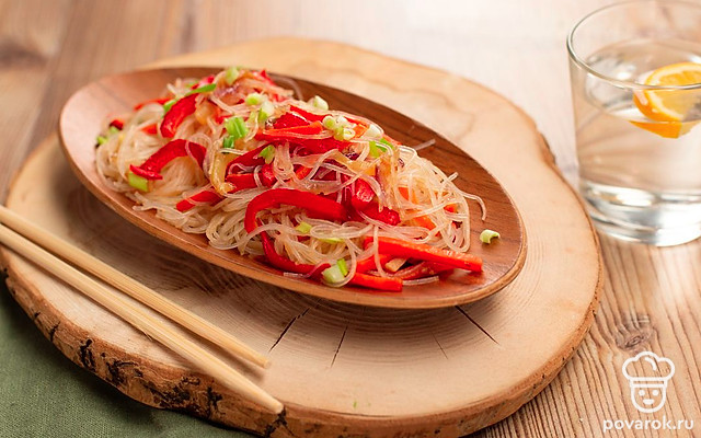 Фунчозу иначе называют съедобным стеклом или стеклянной лапшой. Причина проста: при варке лапша становится практически прозрачной. Вкус фунчозы полностью соответствует ее виду: он такой же нейтральный и «бесцветный». Благодаря этому свойству лапша как бы «подстраивается» под те продукты, с которыми подается. В нашем случае это овощи — они сделают это блюдо ярче во всех смыслах.