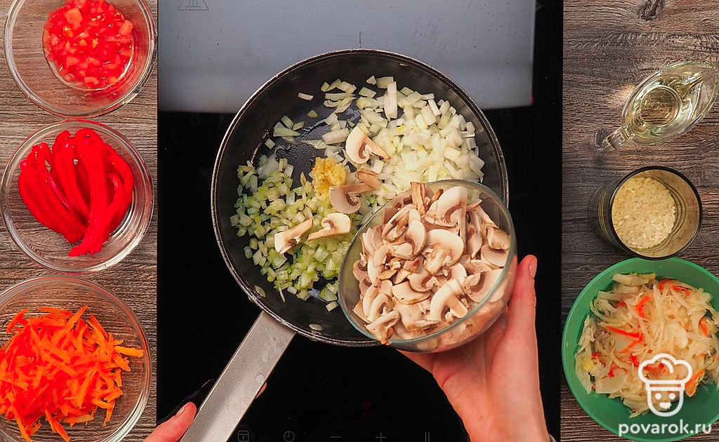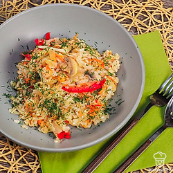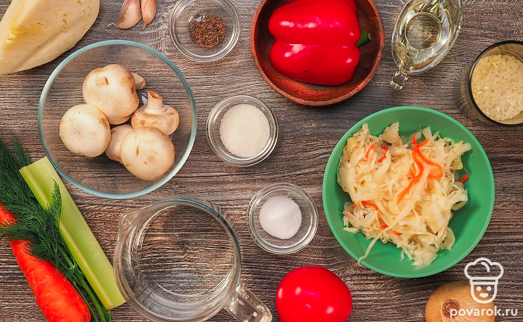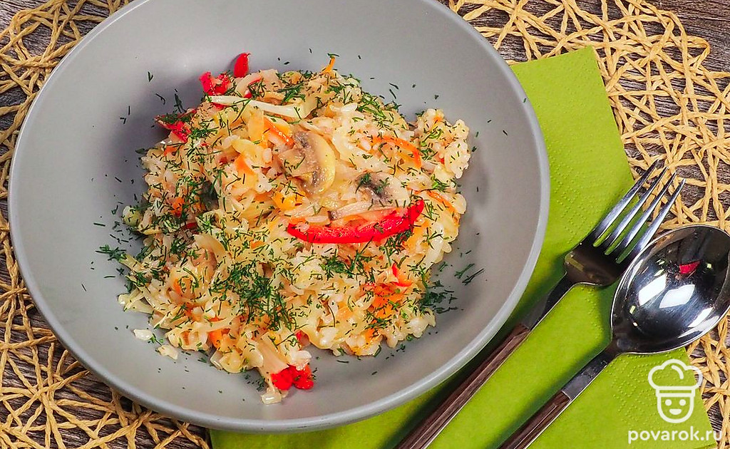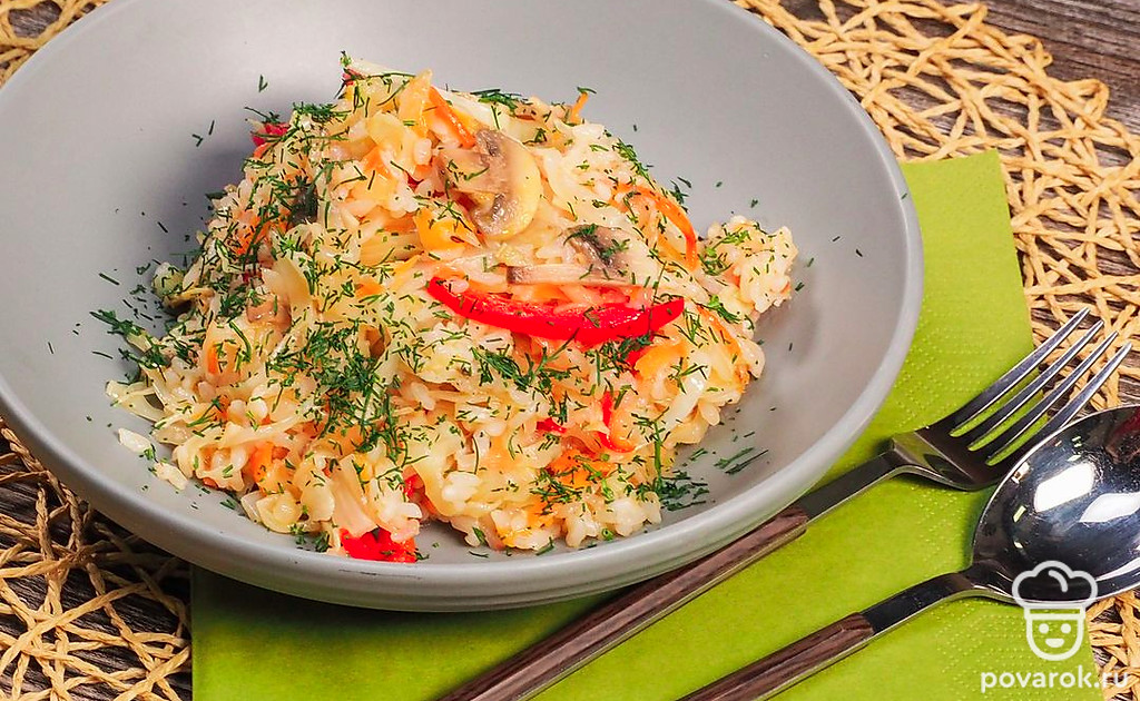 Традиционно бигус готовят с капустой и мясом. Но в дни поста рецепт немного меняют. Вместо мясной составляющей добавляют любые грибы. Также такой вариант рецепта идеально подходит тем, кто не употребляет в пищу продукты животного происхождения. Для сытости кроме грибов в бигус добавляют рис. В бигусе с грибами можно использовать любые дары леса: свежие или замороженные.