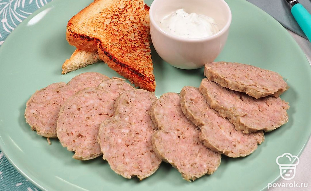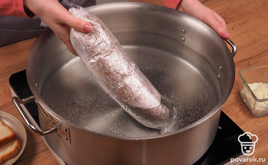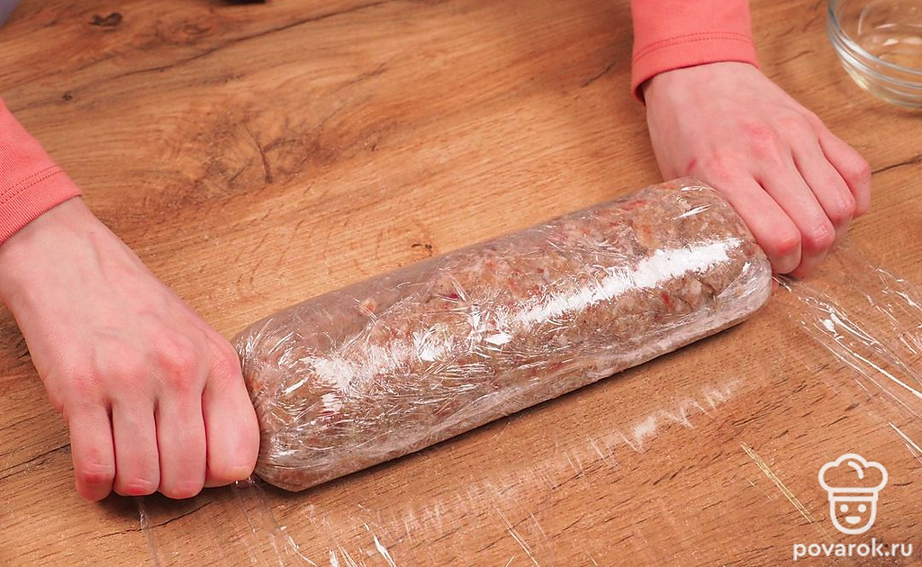 Колбаса в пленке — рецепт домашней вареной колбасы. Домашняя колбаса готовится из отборного мяса и специй. Родиной колбасы считается античная Греция, а позже этот вид закуски распространился по всему миру. Колбасные изделия любят и взрослые, и дети. Именно по этой причине многие начинают готовить колбасу дома. Регулировать толщину продукта очень просто, ведь фарш заматывается в пищевую пленку.