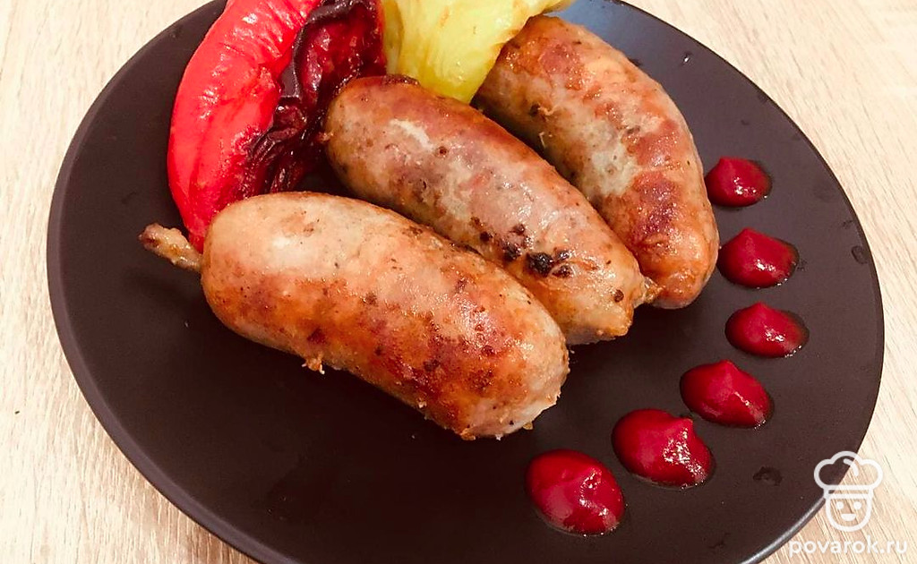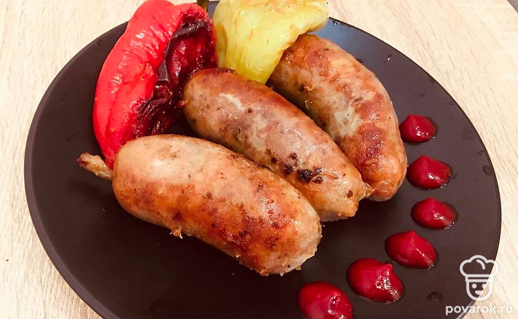 Пожарьте купаты в духовке без добавления масла, они получатся более нежными и сочными.