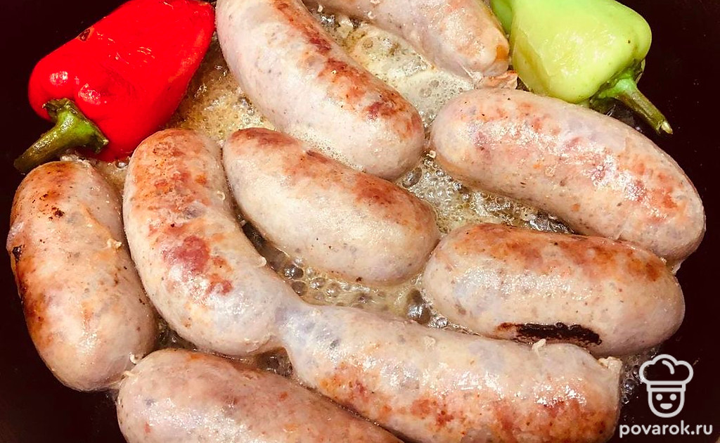 Аккуратно достаньте купаты из воды, обжарьте на сковороде с большим количеством масла, со всех сторон. Чтобы купаты наверняка прожарились, в конце приготовления накройте сковороду крышкой и убавьте огонь. Потомите их еще несколько минут.