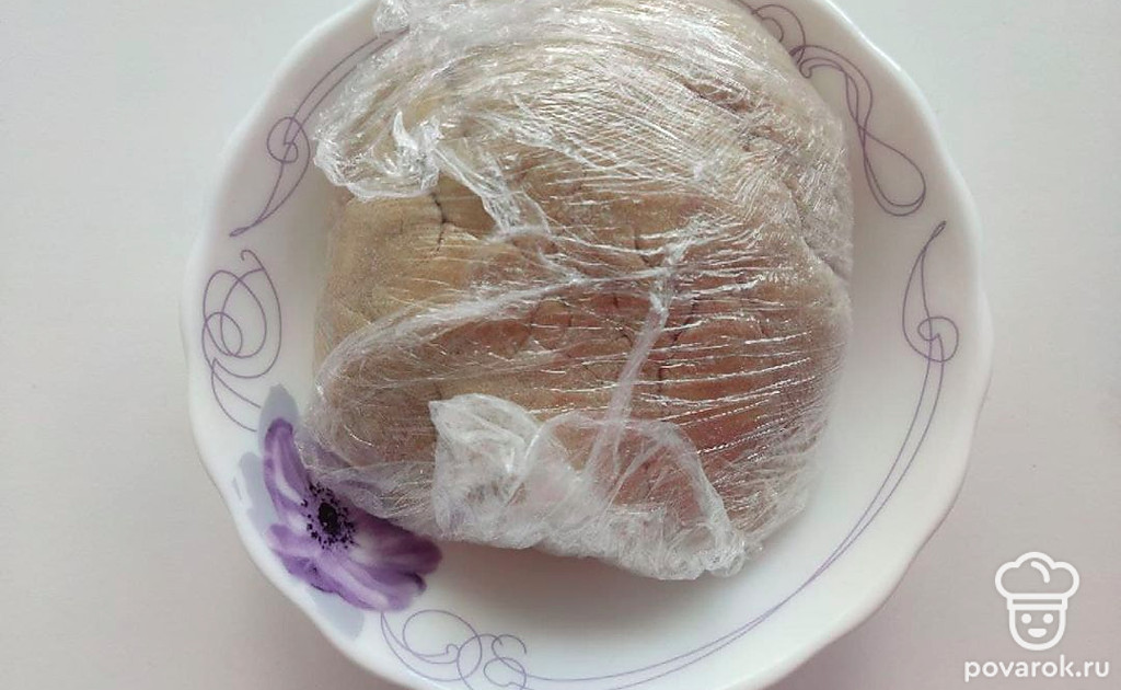 Готовое тесто накройте пищевой пленкой и уберите в холодильник на 30 минут - оно станет более равномерным и повысятся его вкусовые показатели.