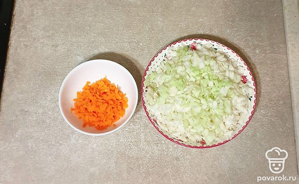 Капусту мелко нашинкуйте. Морковь натрите на терке.