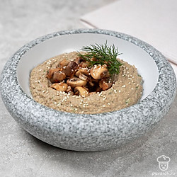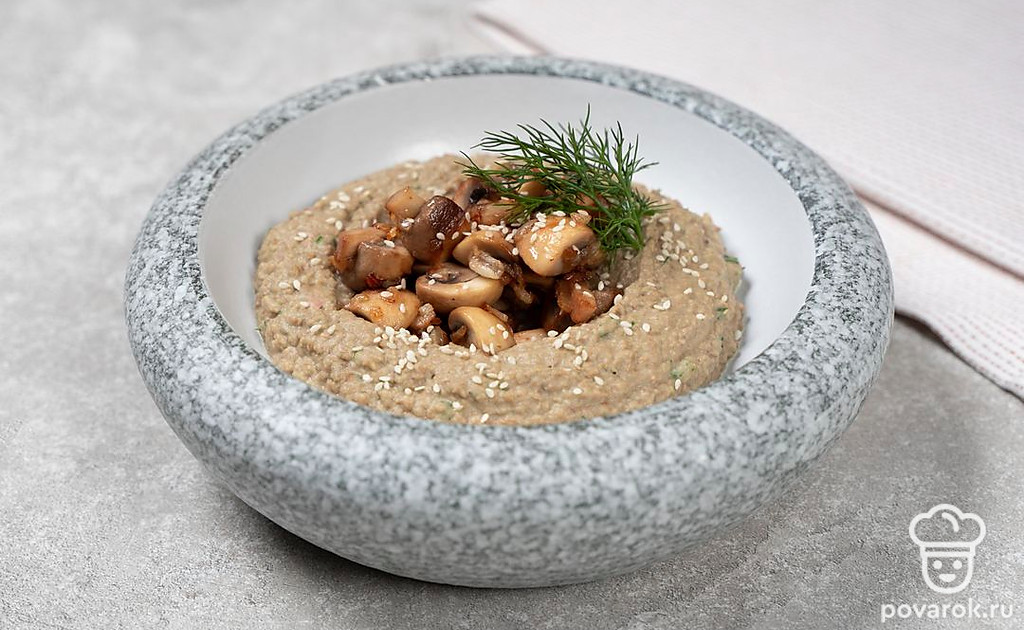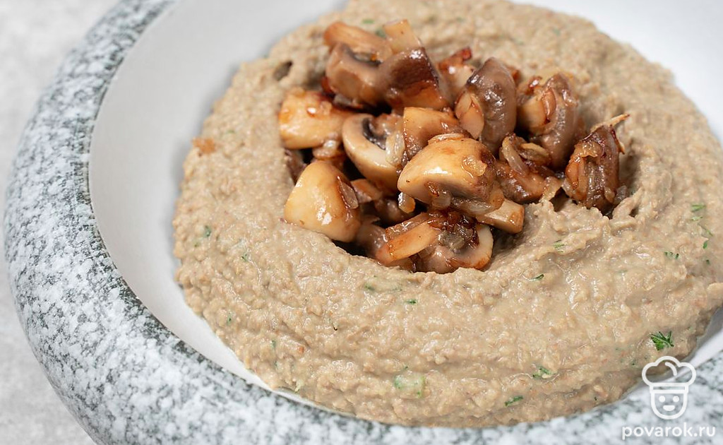Зеленая чечевица считается самой полезной. Несмотря на невысокую калорийность, она содержит в себе практически все витамины B, а также калий и магний. Как и другие бобовые, чечевица требует длительной подготовки. Перед варкой ее обязательно нужно замочить. Из чечевицы можно приготовить много различных блюд. В этом рецепте мы предлагаем вам попробовать чечевичное пюре. А чтобы разнообразить ее ореховый вкус, добавьте немного жареных шампиньонов. Получится сытное и вкусное блюдо на обед.