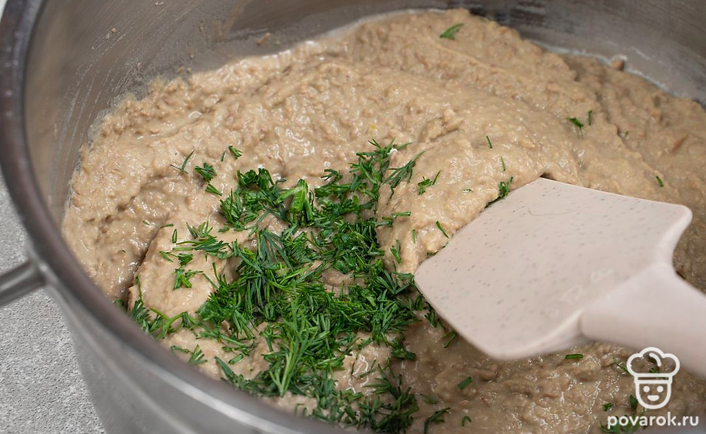 Измельчите укроп. Добавьте его в готовое пюре и хорошо перемешайте.