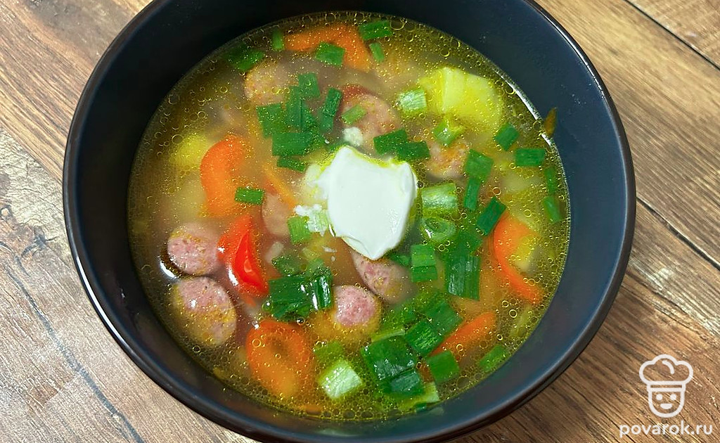 Суп с колбасой классический