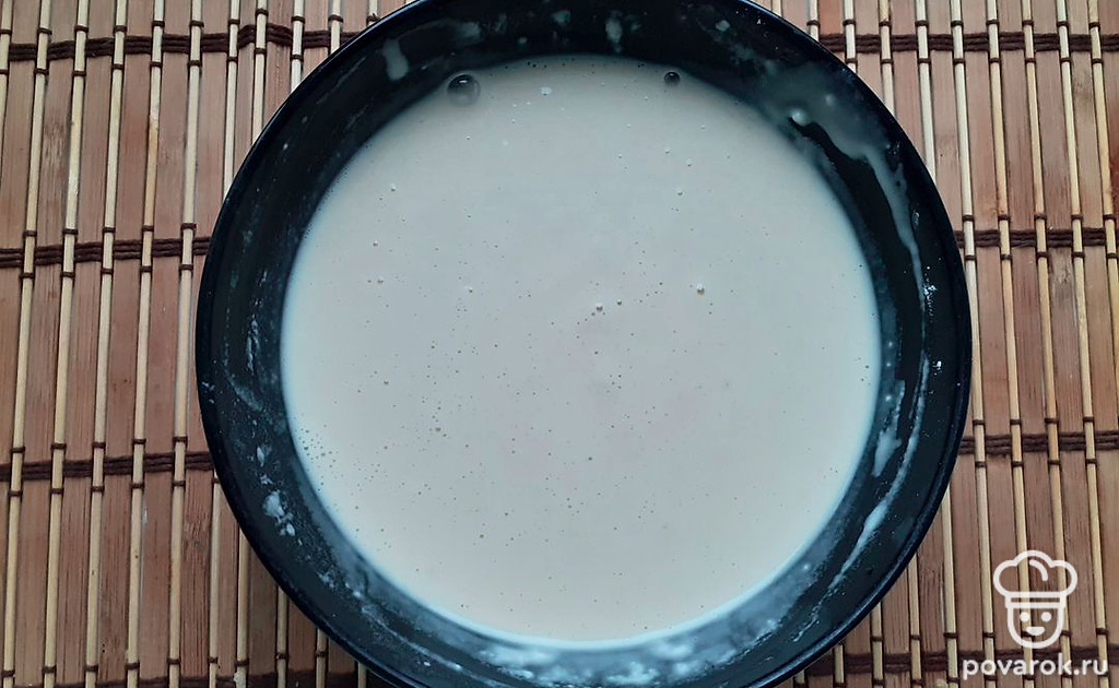 Добавьте молоко. Перемешайте. Тесто должно быть как сметана.