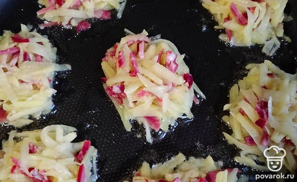 Выложите получившуюся массу столовой ложкой на сковороду с растительным маслом. Жарьте как оладьи.