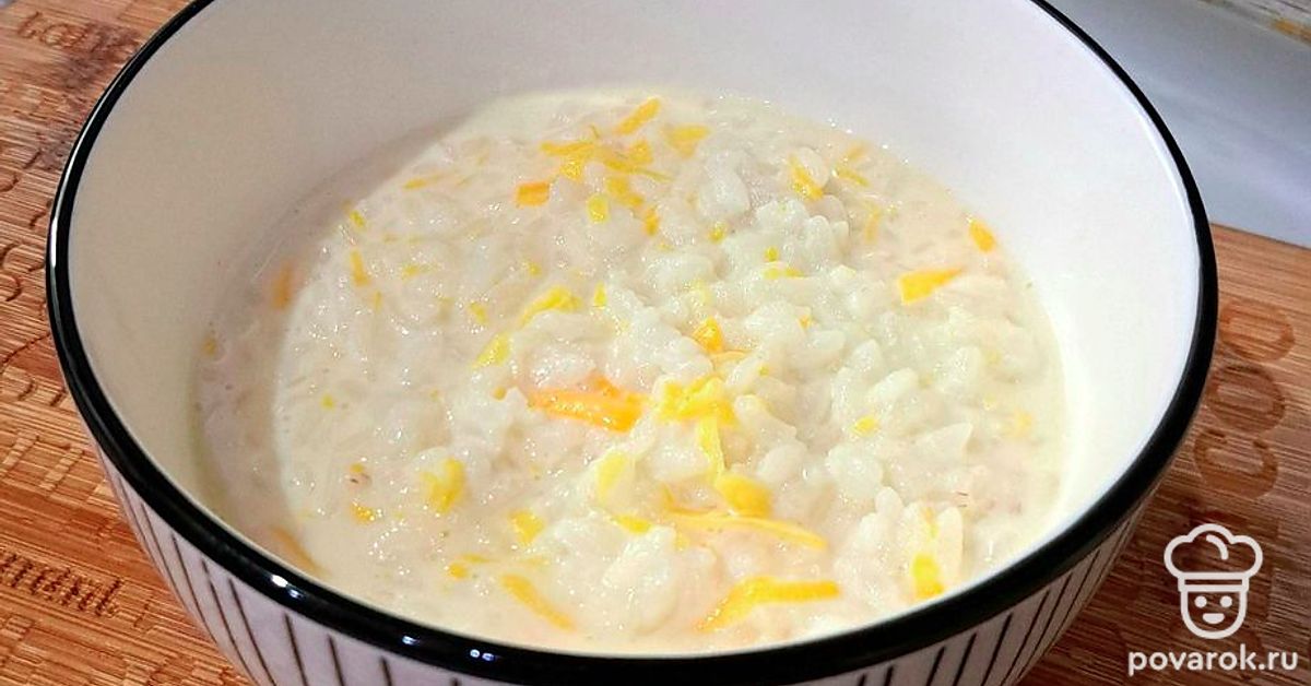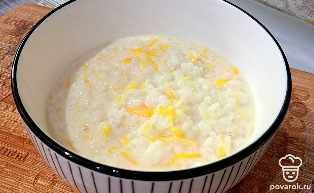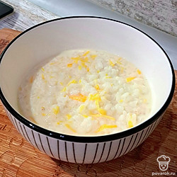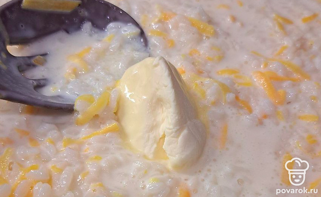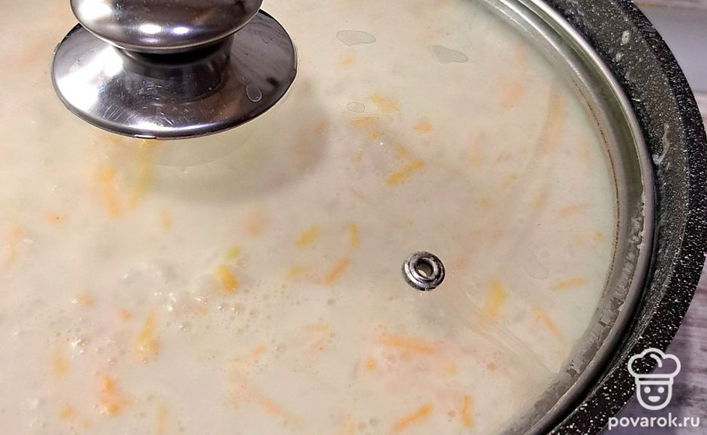 Как только рис сварится до полуготовности, добавьте в кастрюлю 500 миллилитров молока.