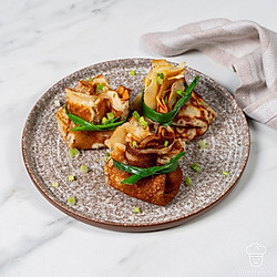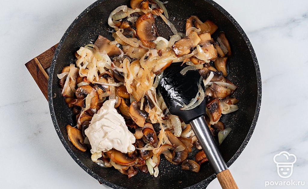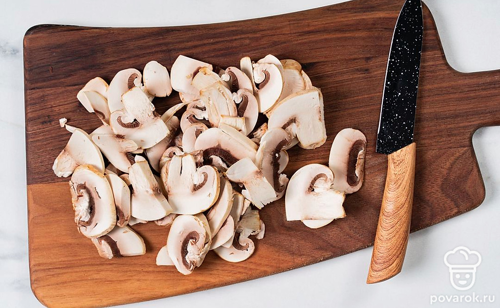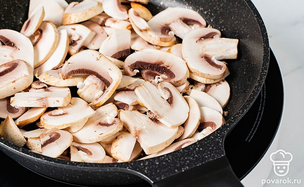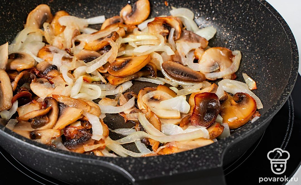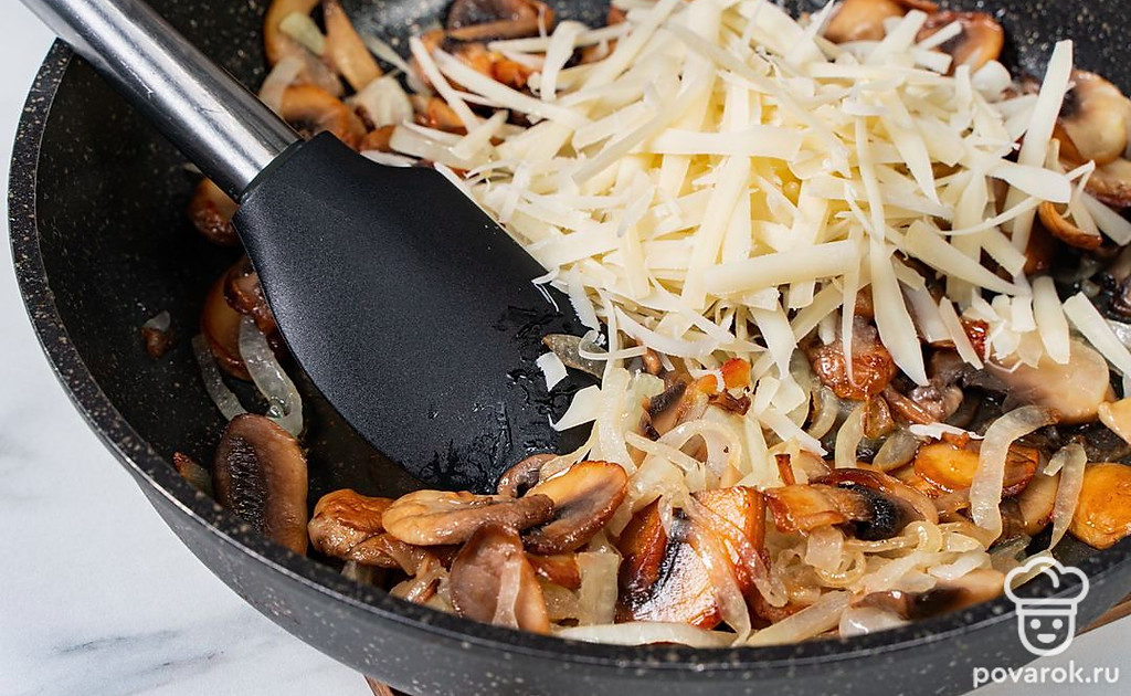 Мы приготовили очень вкусную и оригинальную закуску, которая хорошо подойдет и для сытного перекуса. За основу мы взяли блины, а в качестве начинки выбрали грибы, лук и тертый сыр. Грибы для блюда можно выбрать любые. Мы взяли шампиньоны, но также хорошо подойдут вешенки или лисички. Чтобы закуска держала форму и не разворачивалась, обязательно соедините ее пером зеленого лука. Если его нет, можно взять и другую зелень.