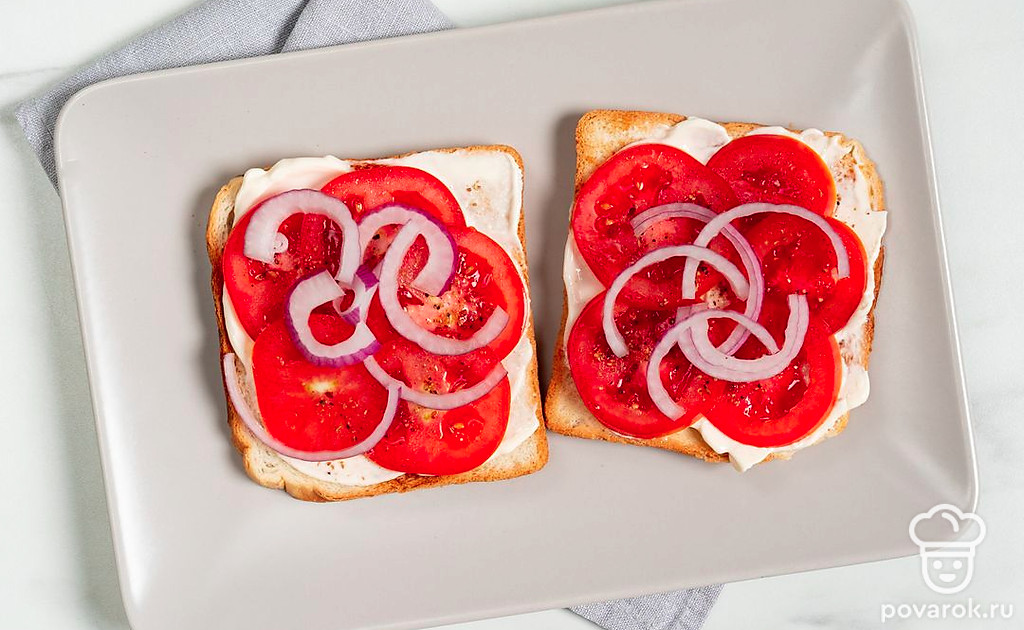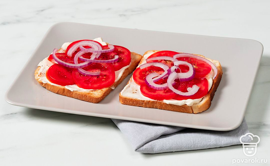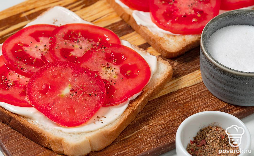Для того, чтобы сделать эти вкусные бутерброды, вам потребуется минимум ингредиентов. А их приготовление займет не более 10 минут. Помидоры для закуски лучше взять красные, упругие, но не переспелые. Мягкий плавленый сыр подойдет любой. При желании можно заменить его творожным. При подаче украсьте бутерброды красным луком или свежей зеленью.
