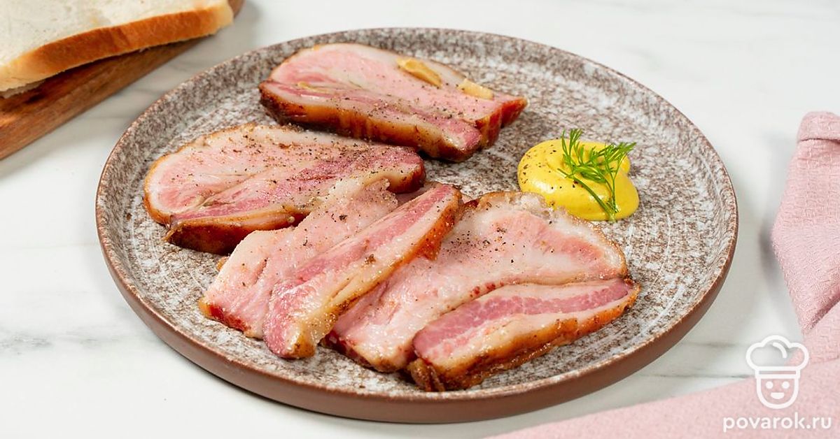 Для этой закуски можно выбрать любое сало: с мясными прослойками или без, со шкуркой или без нее. Достаточно только соли и черного перца, чтобы получить вкусное запеченное сало. Но можно пробовать и острый красный перец или хмели-сунели или даже смесь прованских трав. Не жалейте пряностей, добавляйте их побольше. Вкус и аромат будут сногсшибательными. После полного остывания тонко нарежьте сало и подавайте к столу с черным хлебом, горчицей и соленьями.