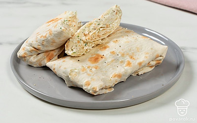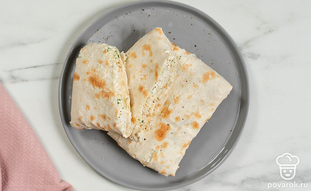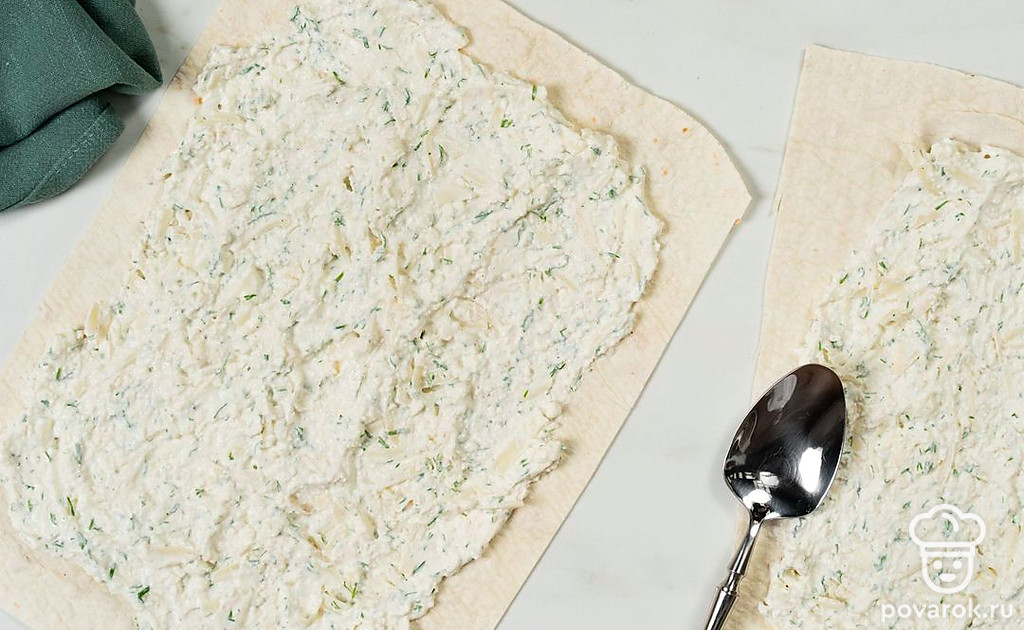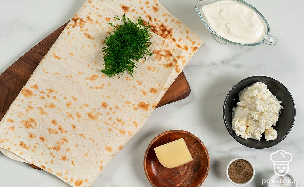 Из лаваша можно приготовить много самых разных закусок. В этом рецепте мы взяли его, чтобы приготовить вкусные конвертики с начинкой из творога, сметаны и сыра. Возьмите свежий армянский лаваш, который еще не начал подсыхать. Сметана подойдет любая, а вот творог лучше брать с жирностью выше средней — от 9% до 10%. Благодаря этому закуска получится гораздо сытнее.
