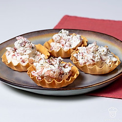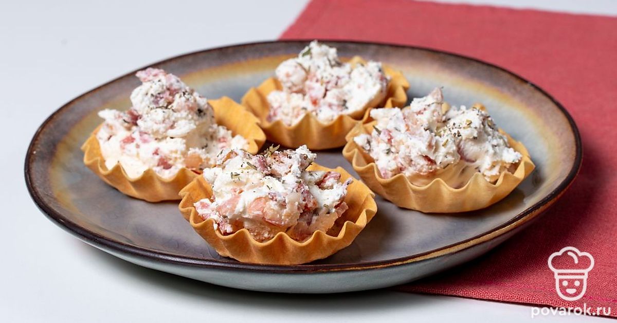 Переложите тарталетки на красивую тарелку и подайте к праздничному столу.