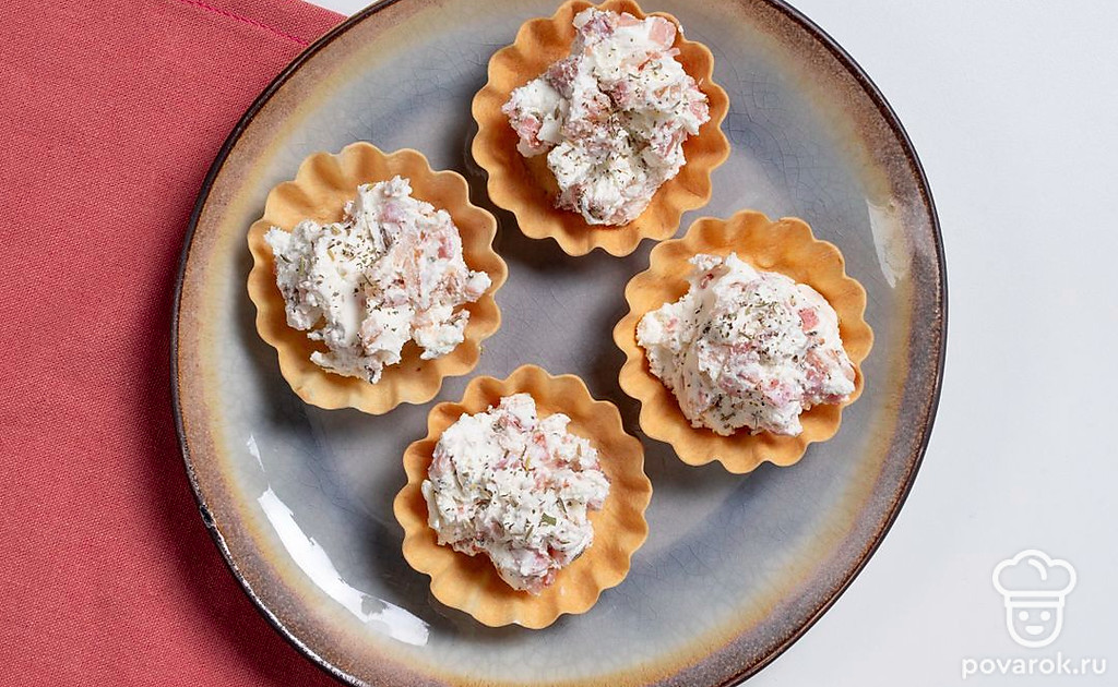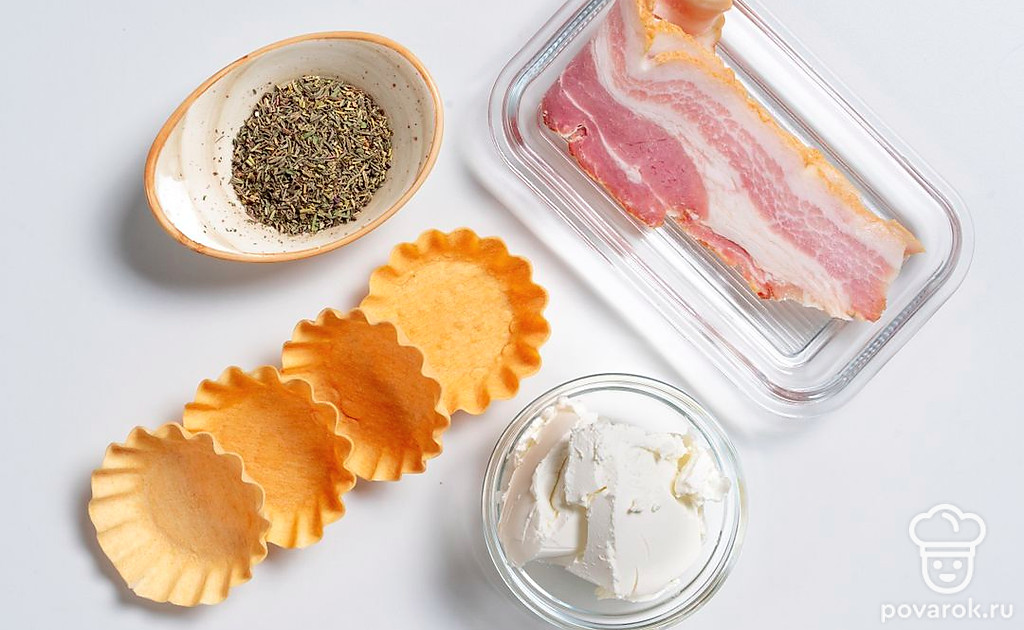Сливочный сыр всегда очень хорошо сочетается с беконом. Именно поэтому мы решили соединить их в этой простой и очень праздничной закуске! Обжарьте бекон до золотистой корочки, а затем смешайте его с сыром и специями. Останется только наполнить начинкой тарталетки и подать их на стол. Кстати, блюдо по этому рецепту получается вкусным как в теплом, так и в холодном виде. Очень рекомендуем приготовить побольше таких тарталеток к новогоднему столу.