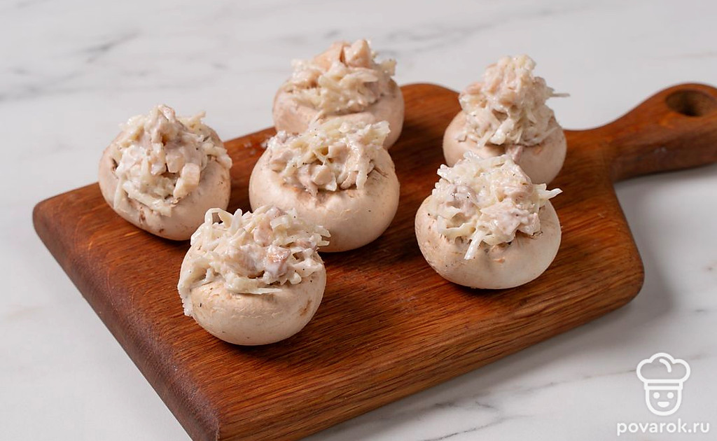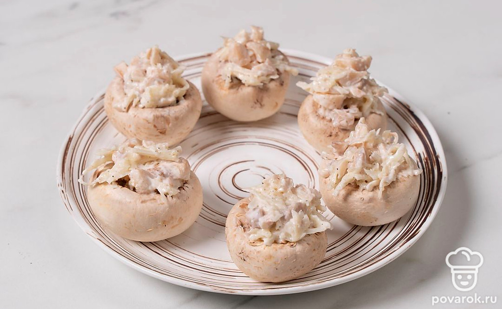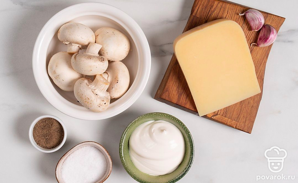 Попробуйте сделать из шампиньонов простую и вкусную закуску. Для нее вам нужно смешать сыр, майонез и чеснок, а затем наполнить этой смесью шляпки грибов. Запекать такую закуску нужно в микроволновке, это значительно экономит время и силы.