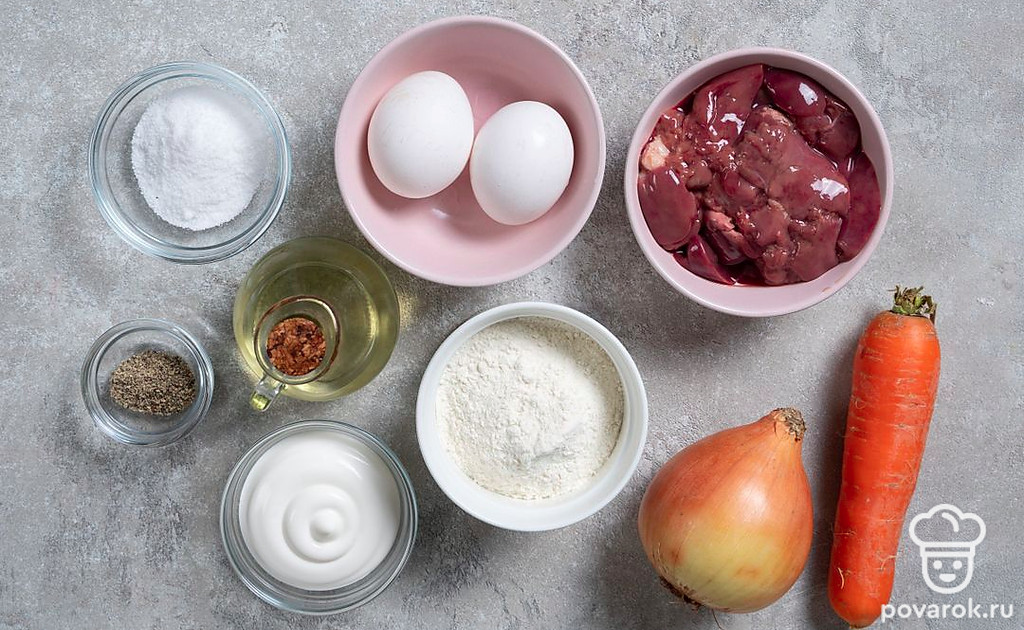 Хорошо промойте и очистите куриную печень и овощи. Яйца вымойте и просушите бумажными полотенцами. Подготовьте блендер, сковороду, терку, пергаментную бумагу и круглую форму для запекания. Перед запеканием включите духовку нагреваться до 190 градусов. Застелите форму листом пергаментной бумаги.