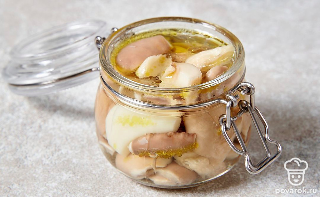 Лучшими грибами для быстрого маринования считаются вешенки. Их не нужно заранее чистить или вымачивать. Достаточно просто отварить вешенки до готовности и переложить в банки. Спустя уже несколько часов у вас будут готовые маринованные грибы. Самое главное — не передержать вешенки в кипящей воде, иначе они получатся жесткими. Если сомневаетесь в готовности грибов, достаньте их за несколько минут до конца варки. Тогда они точно получатся вкусными и мягкими.