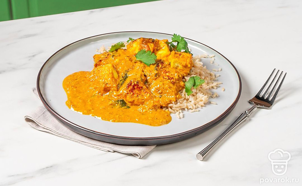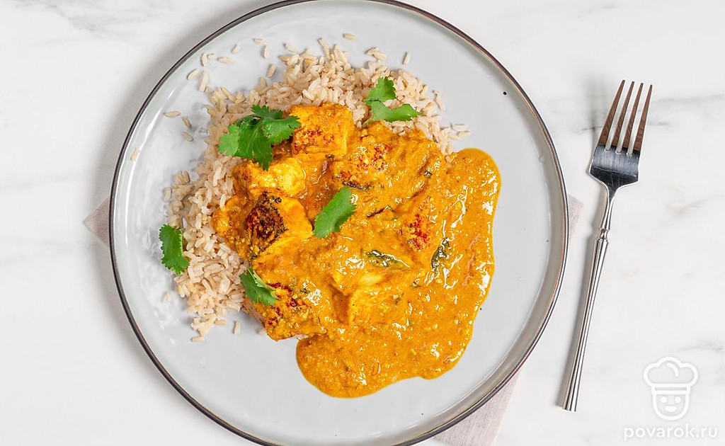 Из индийского сыра панир и пасты корма вы можете приготовить очень вкусный соус. Для этого вам необходимо смешать все ингредиенты, кроме сыра, в глубокой сковороде, залить их водой и потушить до готовности. Отдельно поджаренный панир нужно добавить в соус в самом конце вместе с греческим йогуртом. Ароматный и в меру пикантный соус можно подавать с любым гарниром, но лучше выбрать что-то более нейтральное — например, рис.