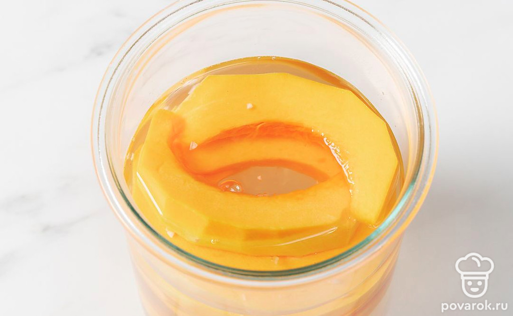 У квашеной тыквы ярко выраженный аромат и приятный вкус, чем-то напоминающий соленые огурцы. Это не только вкусная, но и полезная закуска, которая сохраняет в себе много витаминов. Именно поэтому ее часто ставят на стол в качестве закуски или добавки к различным блюдам. Хранить квашеную тыкву можно в холодильнике в течение нескольких недель.